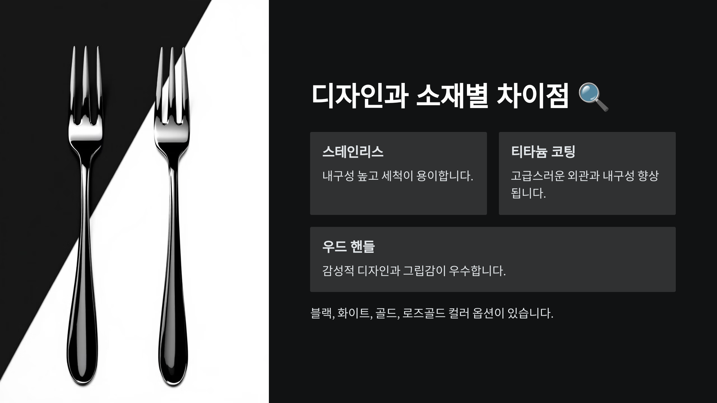 💡 커트러리 디자인 & 소재 비교표 🏆