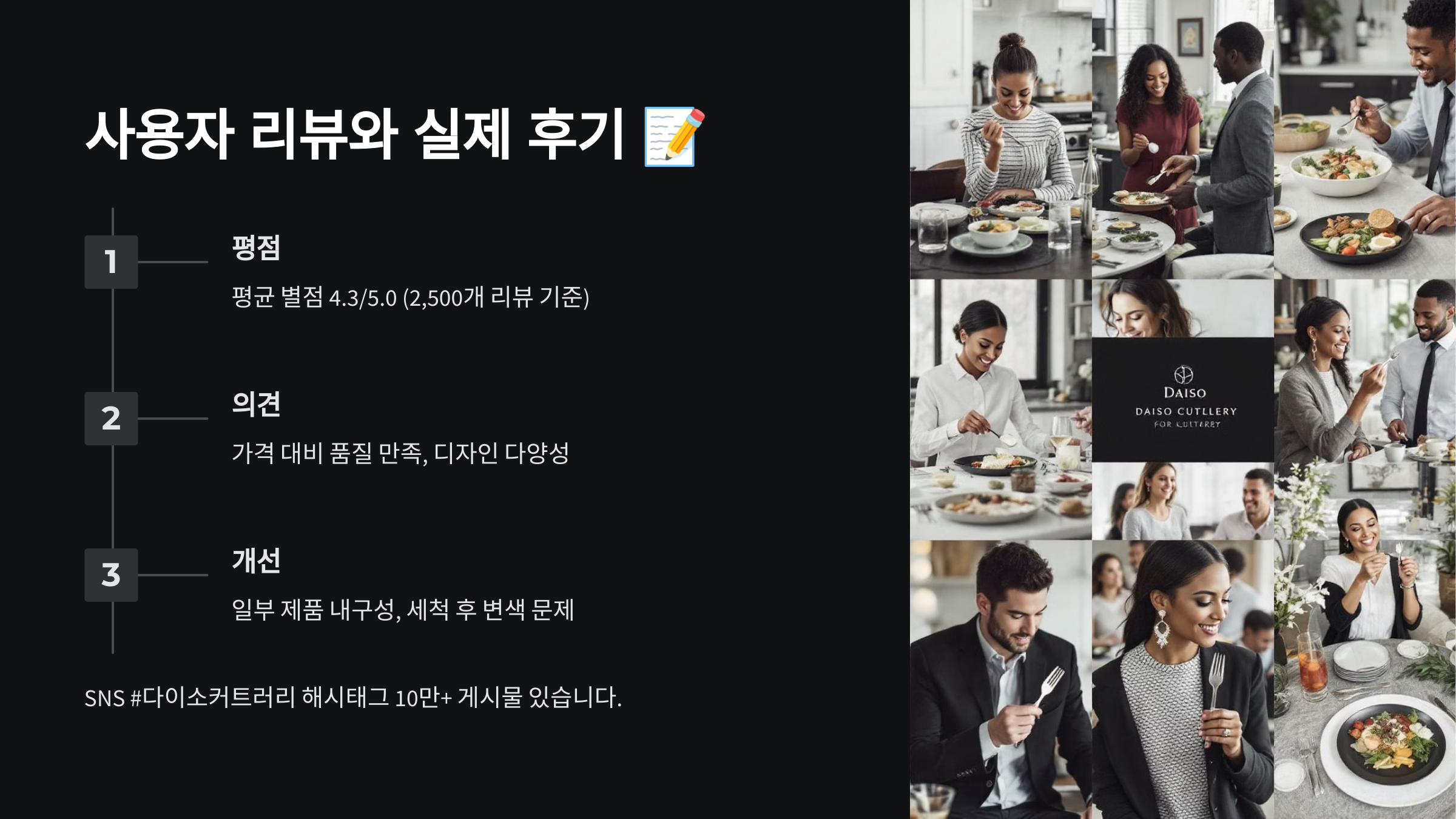 실제 사용자들이 다이소에서 구매한 커트러리를 어떻게 평가하는지 살펴볼까요? 직접 사용해 본 후기들을 모아봤어요. 😉
