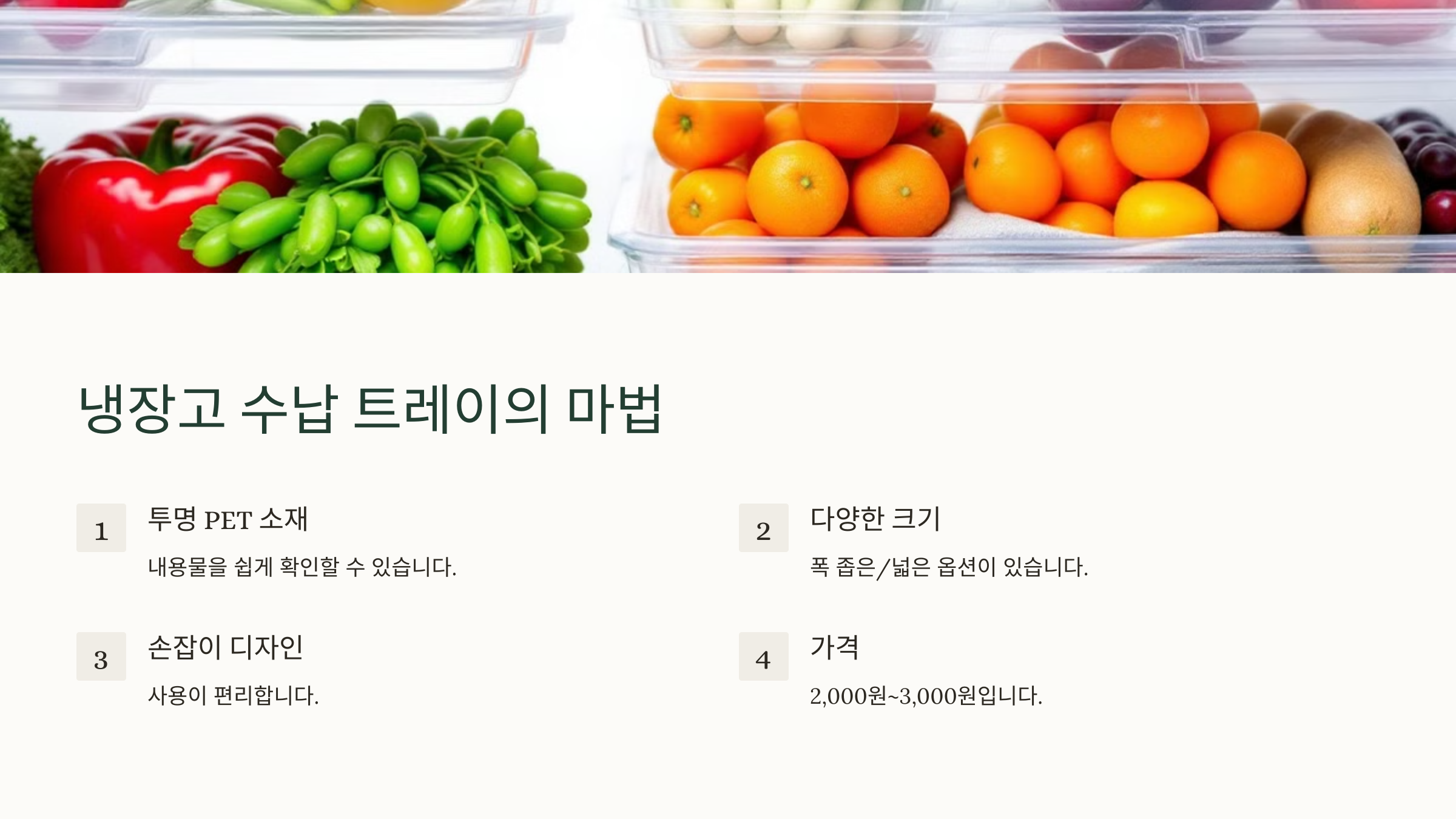 제가 사용해보니, 트레이를 구분해서 채소, 유제품, 반찬류를 나누니 찾기도 쉬워지고 공간도 넉넉해지더라고요. 냉장고 내부를 더욱 깔끔하게 유지하고 싶다면 강력 추천! 🏡