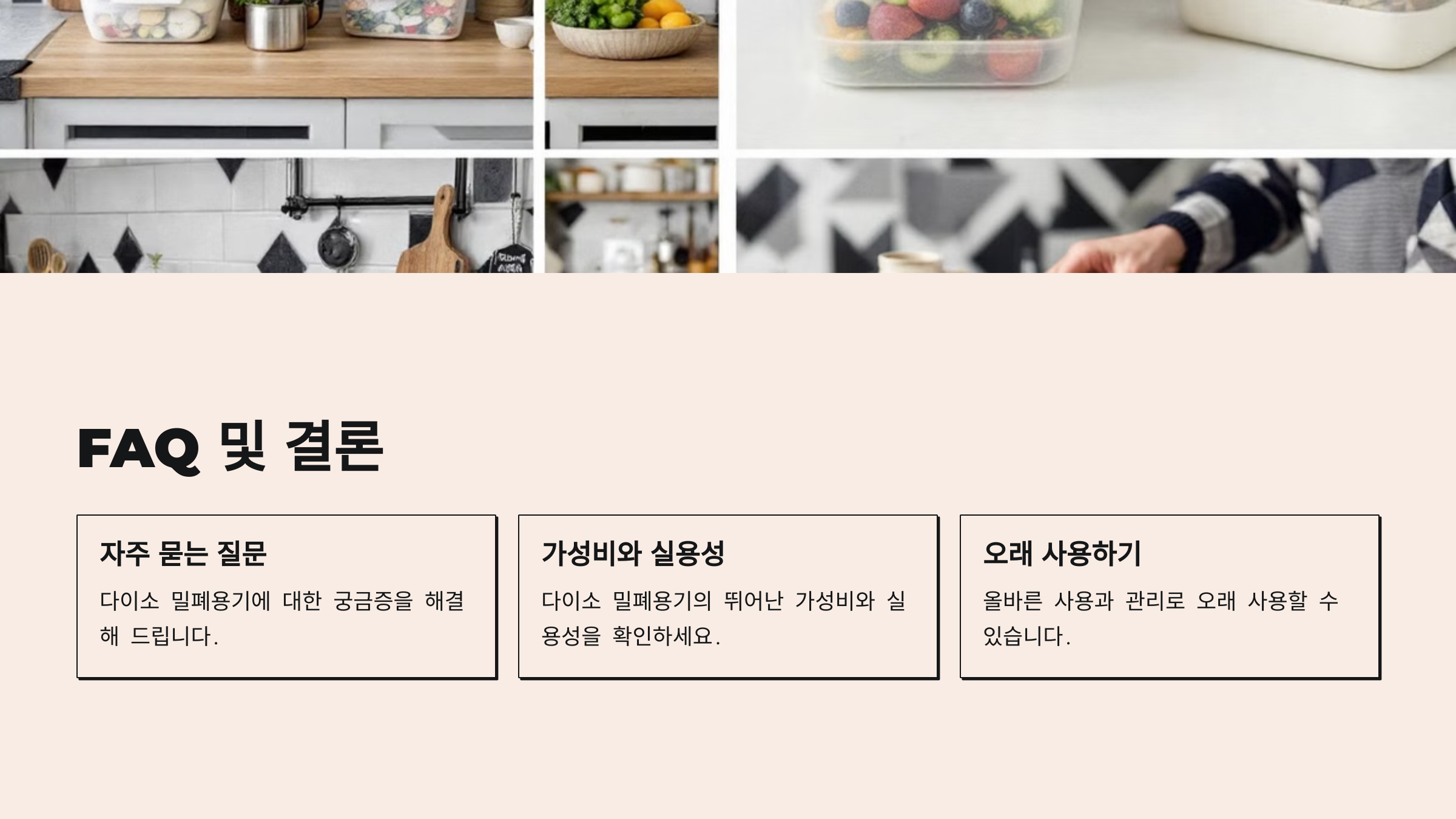 결론적으로, 어떤 음식을 보관할지에 따라 밀폐용기를 선택하는 게 가장 중요해요! 가볍고 실용적인 플라스틱, 위생적이고 내구성이 좋은 유리, 유연성과 내열성이 뛰어난 실리콘 중에서 본인의 사용 목적에 맞는 제품을 고르면 좋답니다. 💡