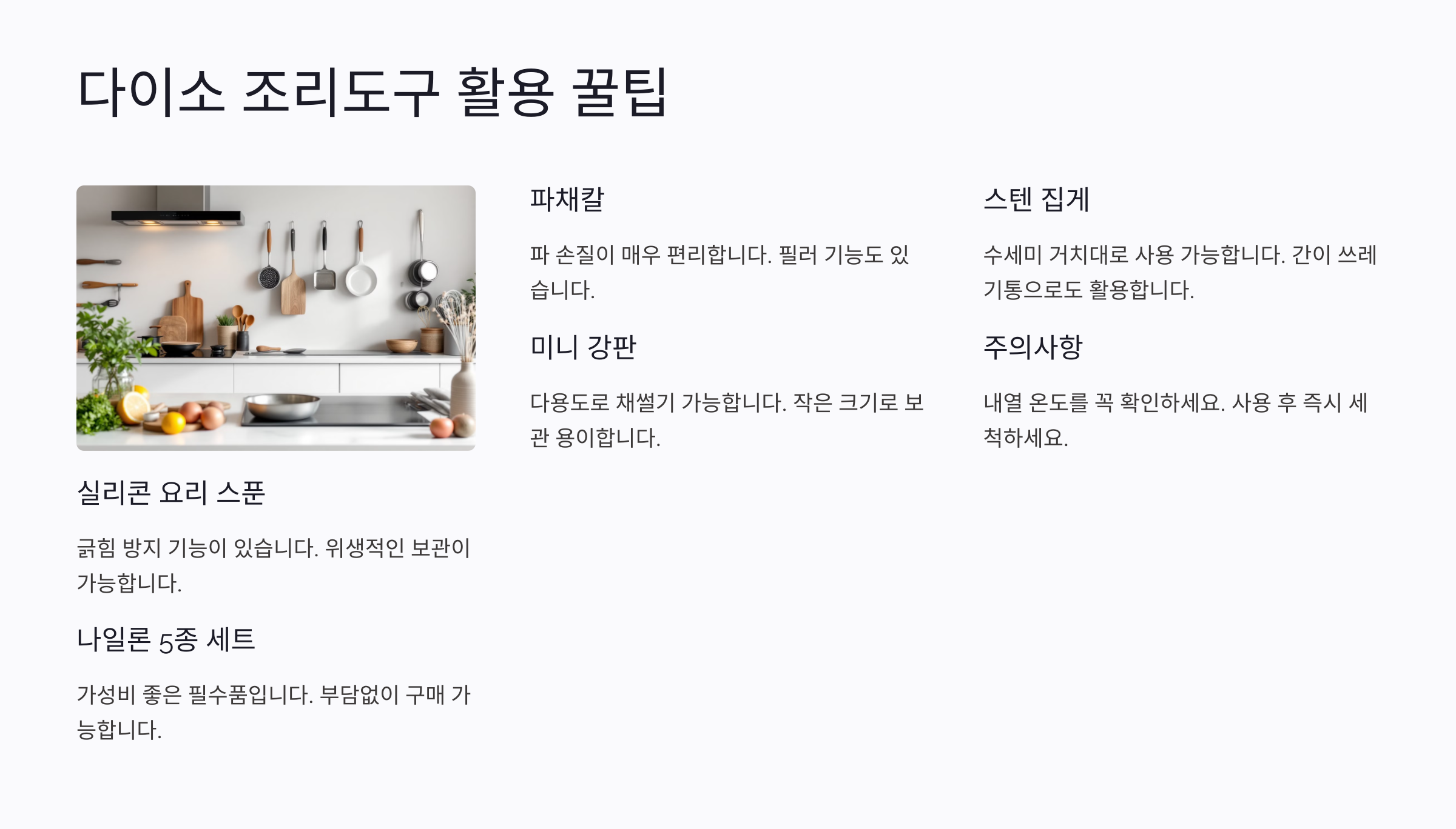 이제 다이소 조리도구를 더 똑똑하게 활용하는 꿀팁을 알아볼까요? ✨