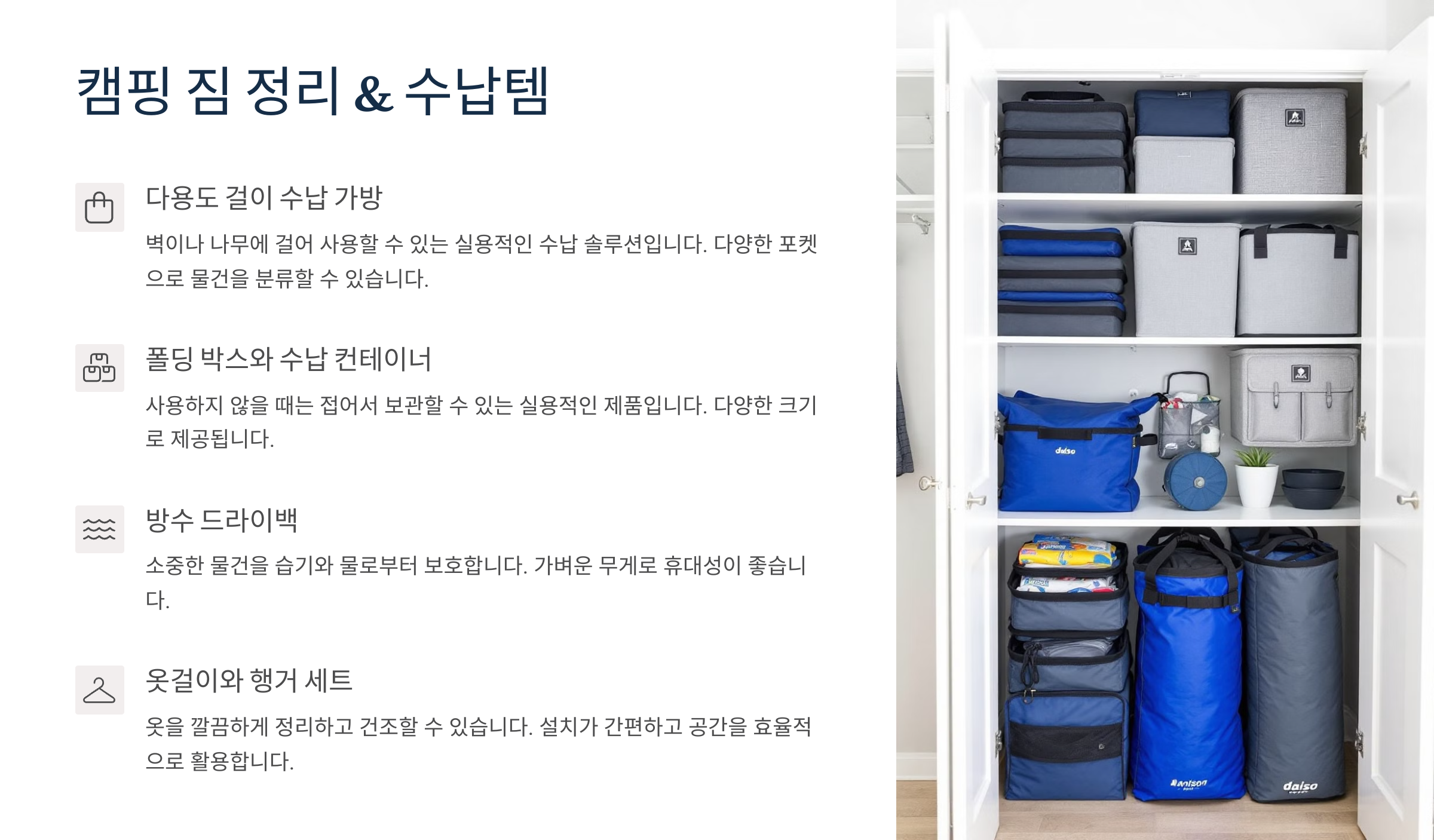 이제 다이소에서 꼭 사야 할 캠핑 짐 정리 & 수납 필수템을 살펴볼까요? 😊