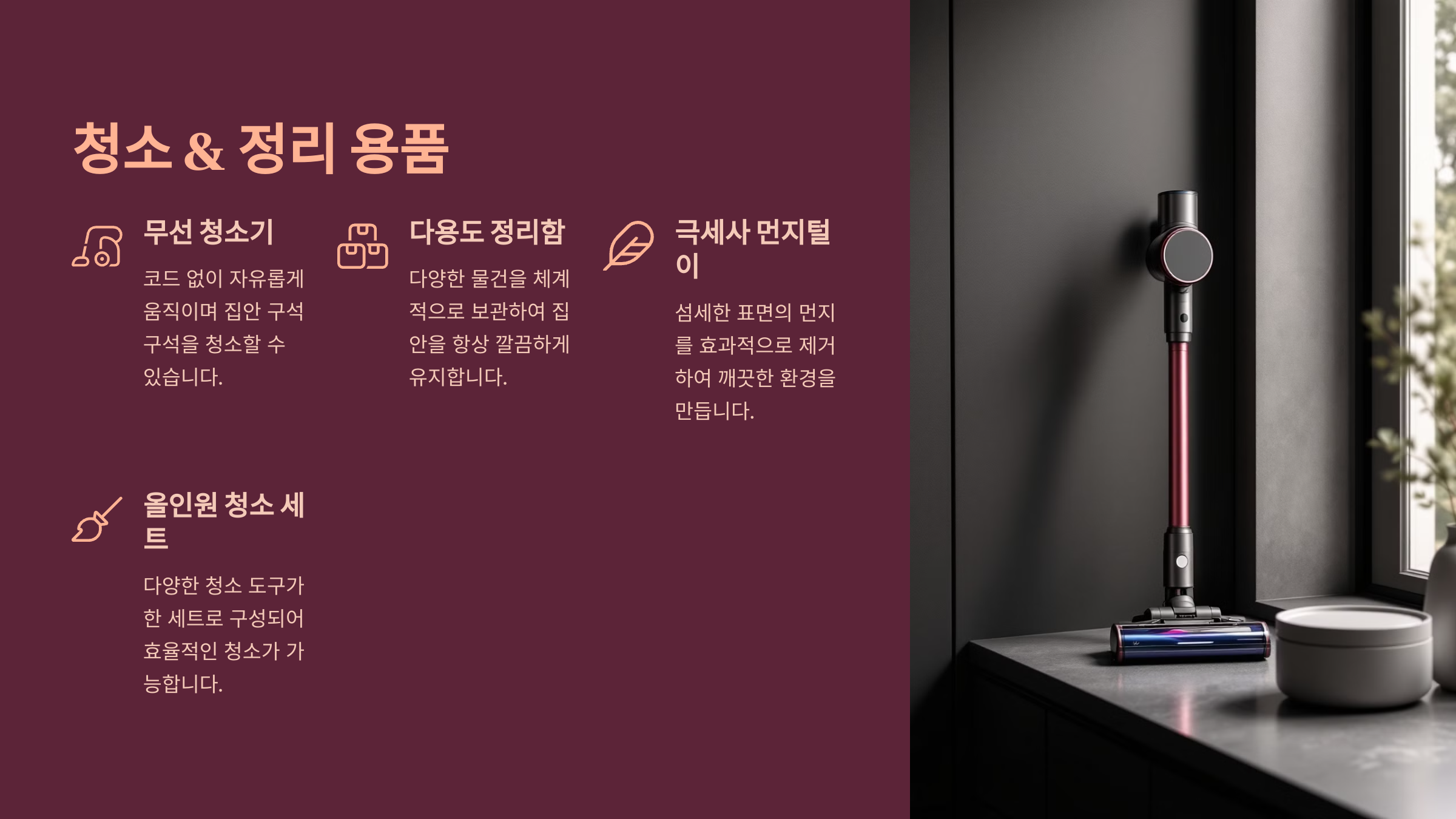 청소 & 정리 용품 집이 깔끔해야 기분도 상쾌해지죠? 다이소에서는 효율적으로 청소할 수 있는 다양한 아이템을 저렴한 가격에 구매할 수 있어요! 🏡✨