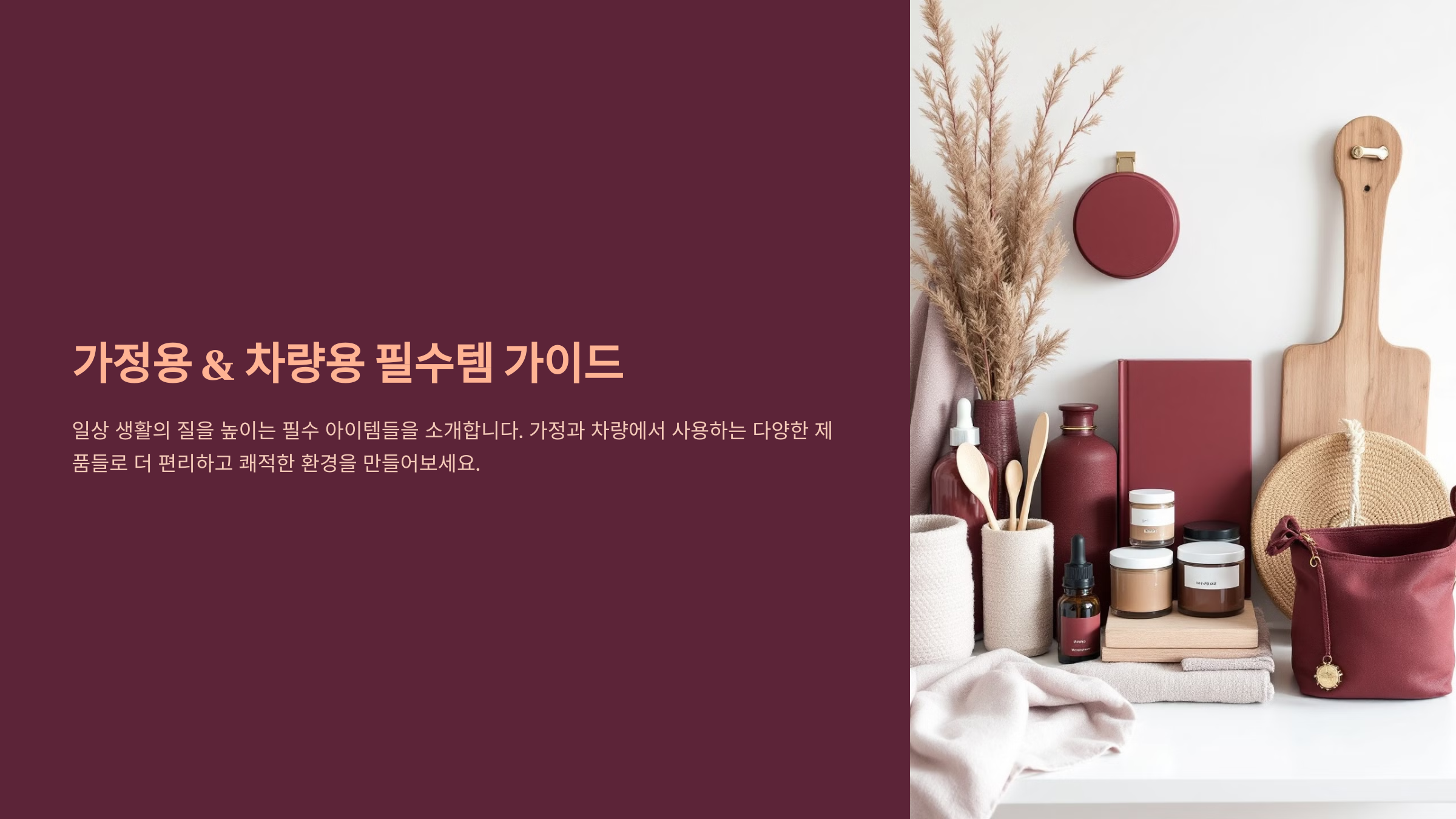 오늘은 가정용 & 차량용 필수템을 카테고리별로 정리해봤어요! 청소, 정리, 주방, 차량 관리까지 한 번에 해결하는 아이템들이니 놓치지 마세요! 🛒✨