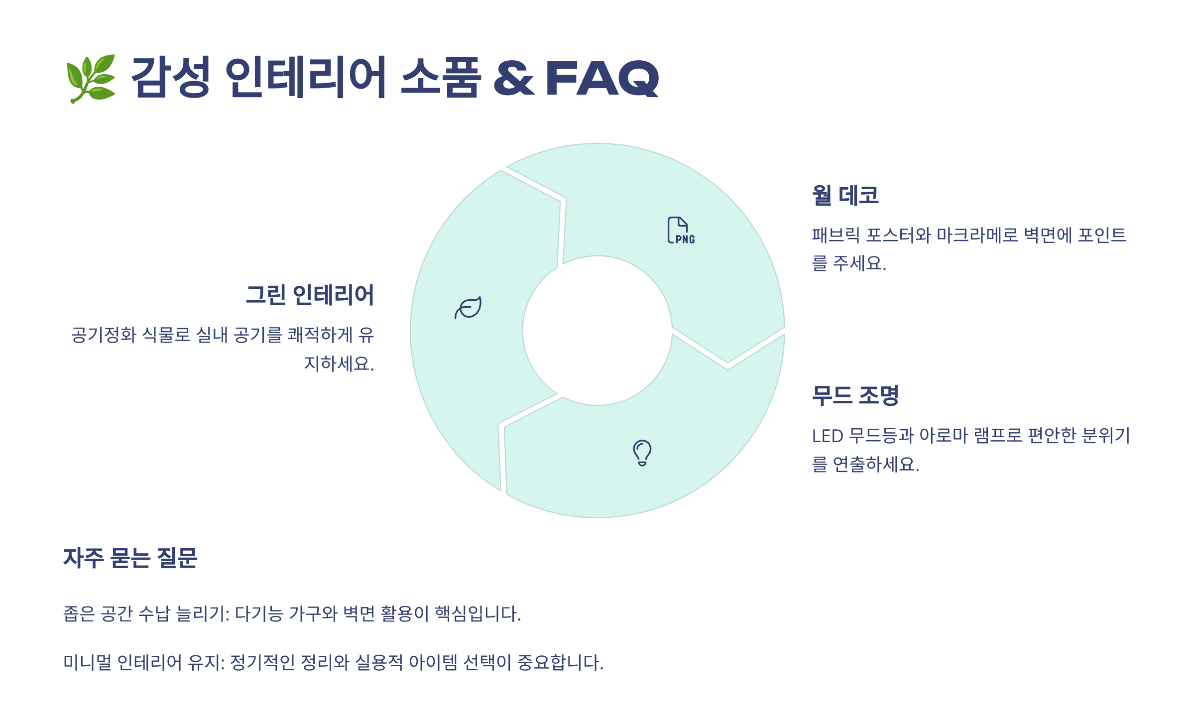 A2. 네! LED 무드등, 감성 포스터 & 액자, 미니 화분 & 조화 같은 아이템을 활용하면 저렴한 비용으로 분위기 있는 공간을 만들 수 있어요. 🌿✨