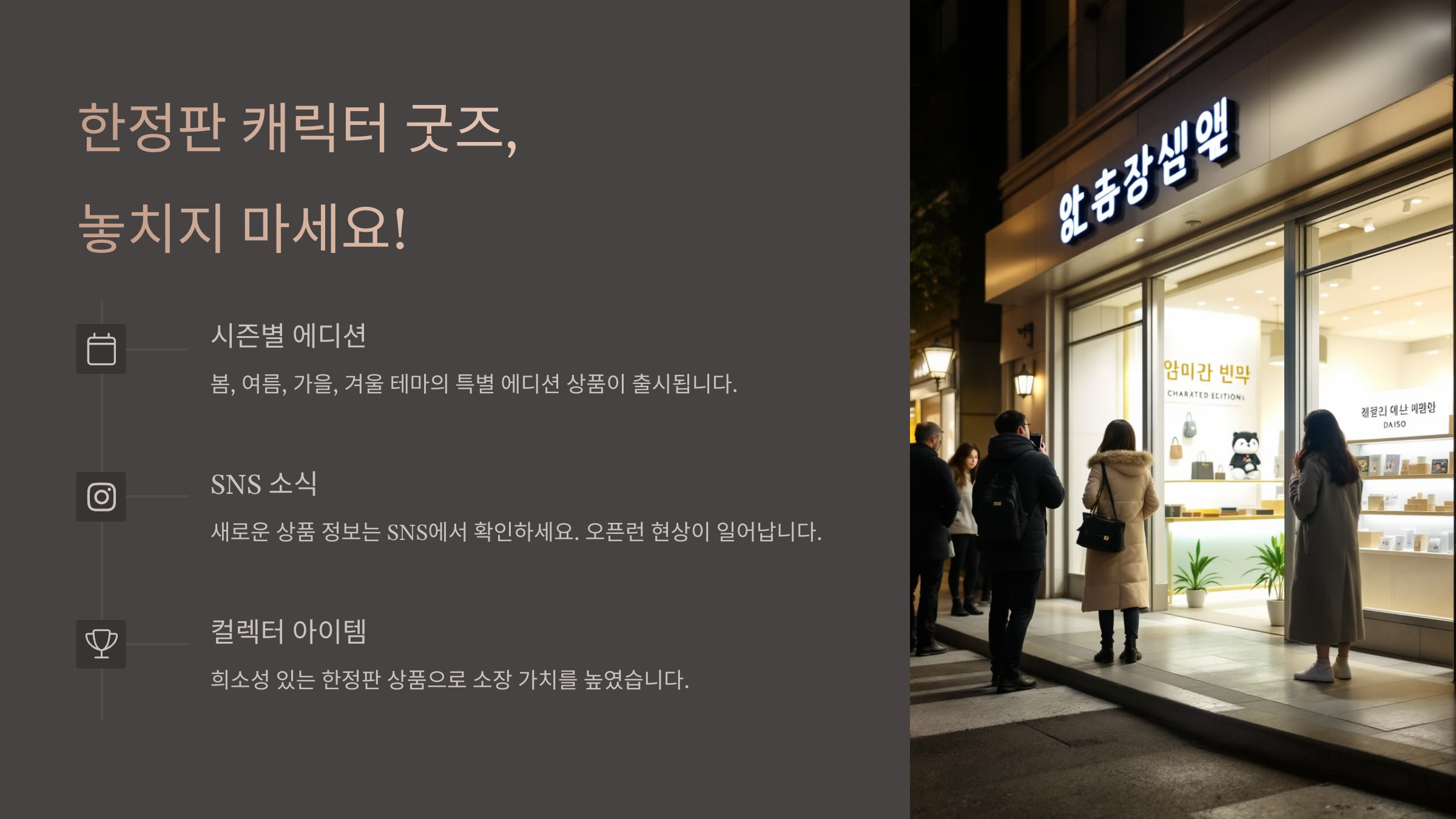 🎯 한정판 캐릭터 굿즈, 놓치지 마세요!