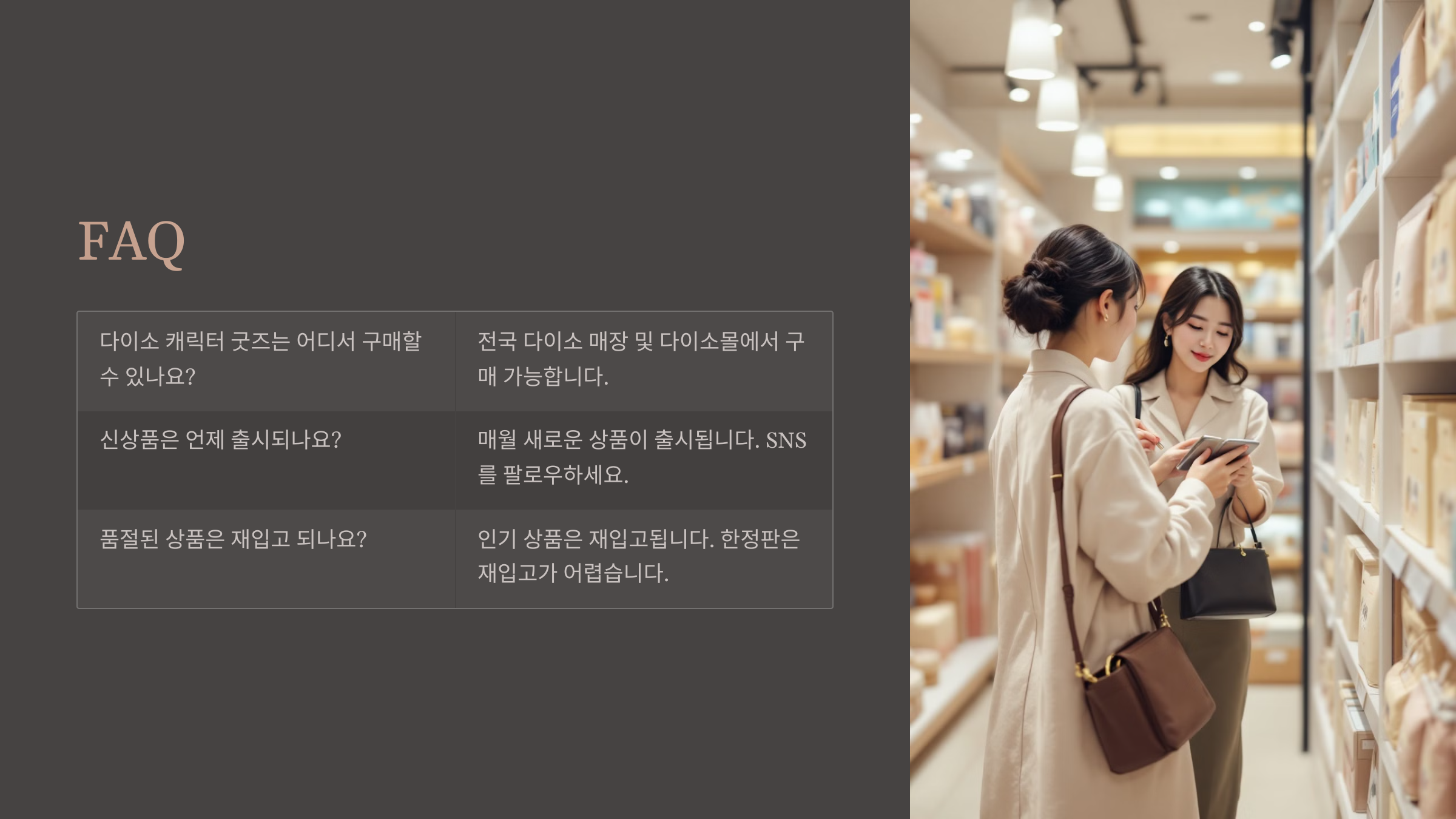 Q4. 다이소 한정판 캐릭터 굿즈는 언제 나오나요?