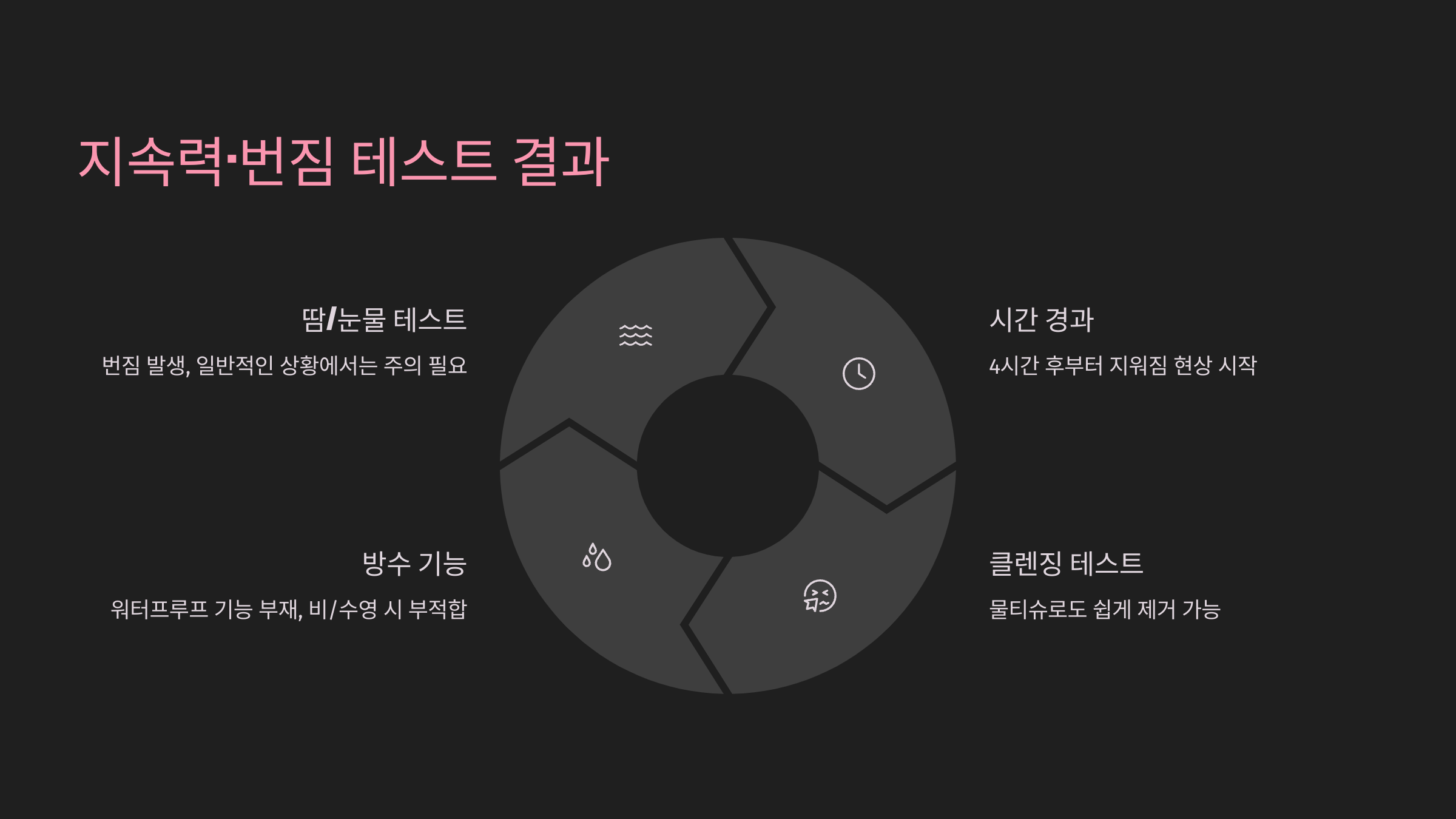 - 💦 워터프루프 효과: 일부 제품은 물에 강한 편이라 쉽게 번지지 않아요.