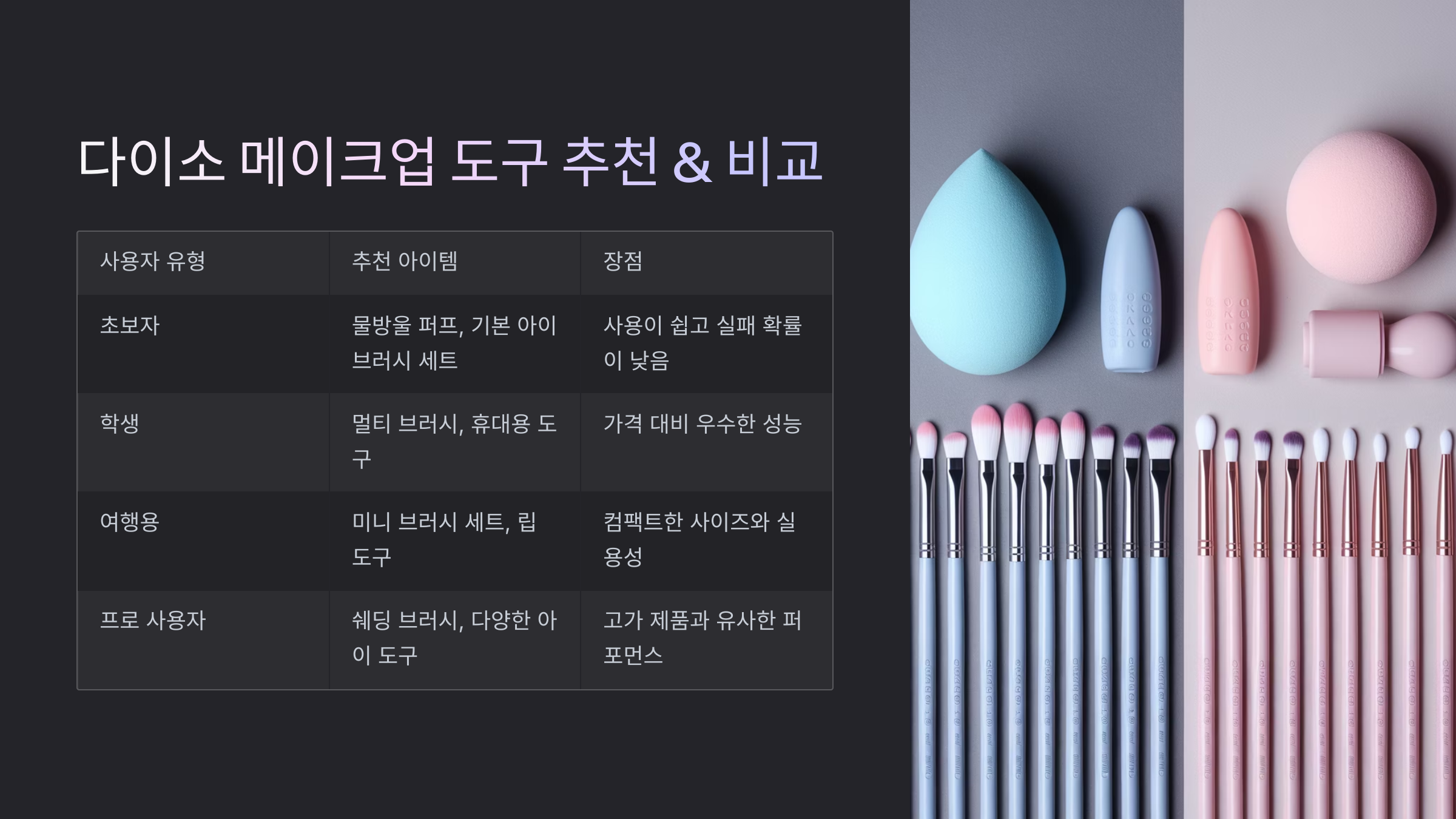 📊 다이소 메이크업 도구 TOP 3 비교
