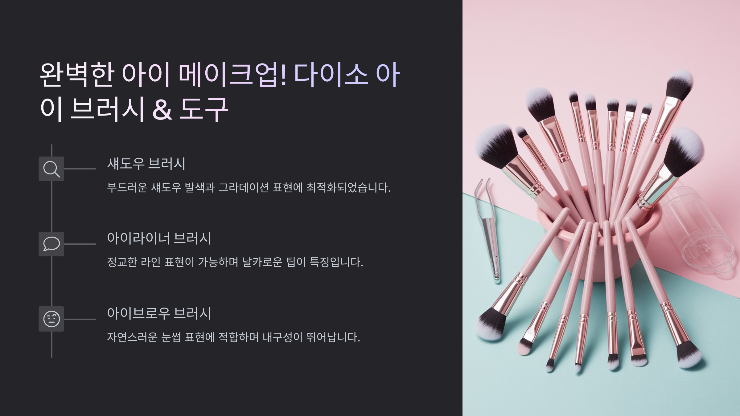 아이 메이크업이 잘되면 얼굴이 살아나요! 다이소 아이 브러시 & 도구를 활용하면 섬세한 메이크업이 가능해요. ✨