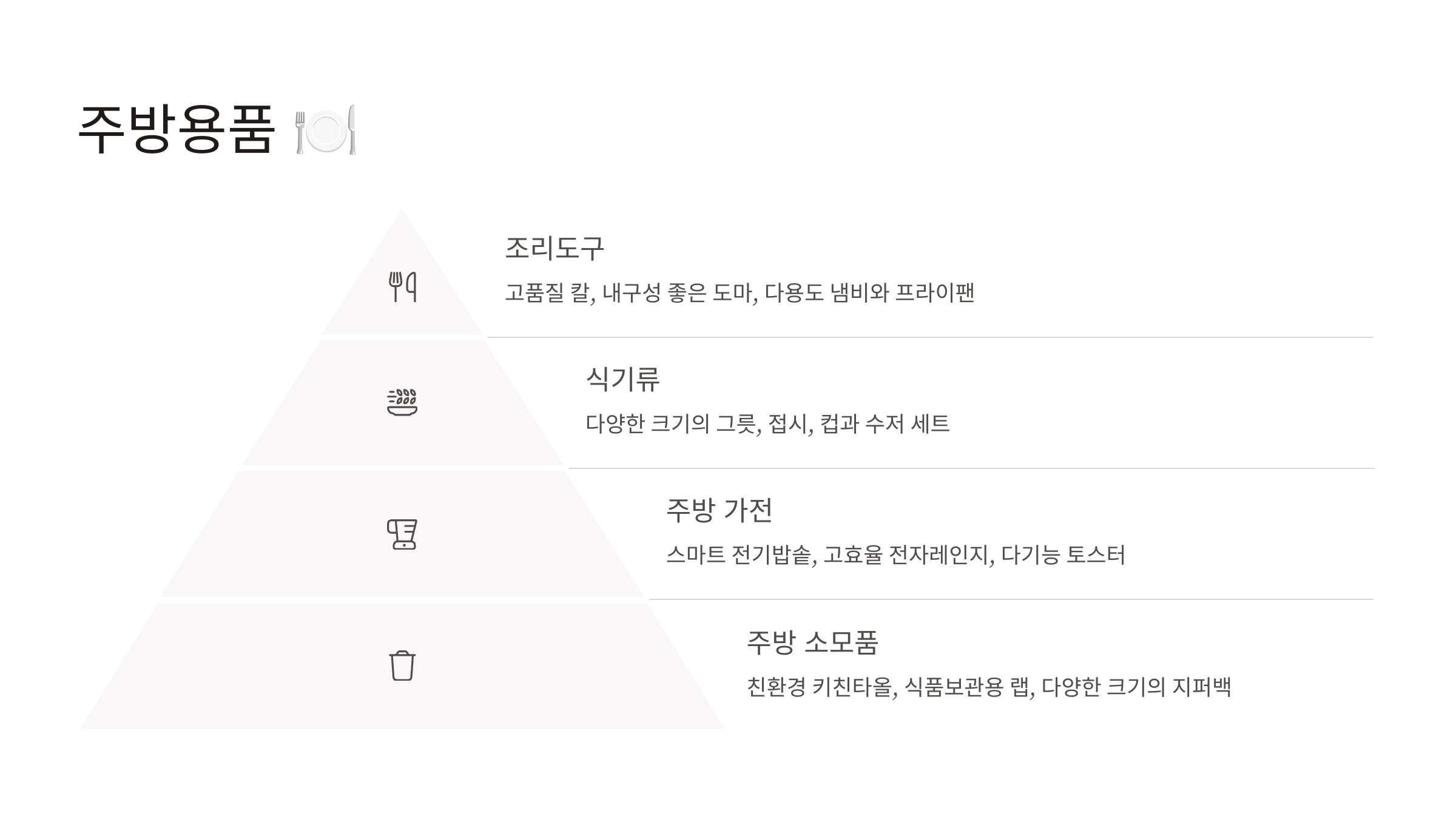 다이소에는 실용적이면서도 가성비 좋은 주방용품이 많아요. 유명 브랜드 제품과 비교해도 손색없을 정도로 유용한 아이템이 많답니다!
