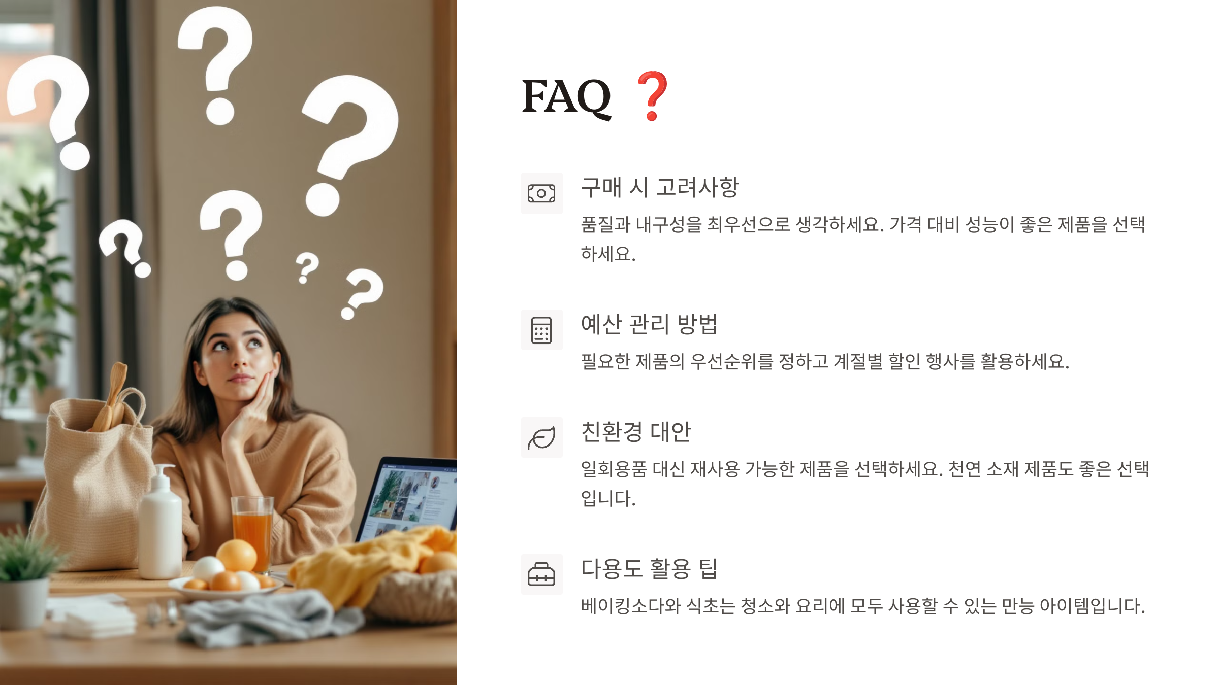 A5. 개인적으로 다이소의 스마트폰 거치대, 주방 실리콘 제품, 뷰티 퍼프는 가성비 최고라고 생각해요. 써보면 절대 후회 안 할 거예요! 👍