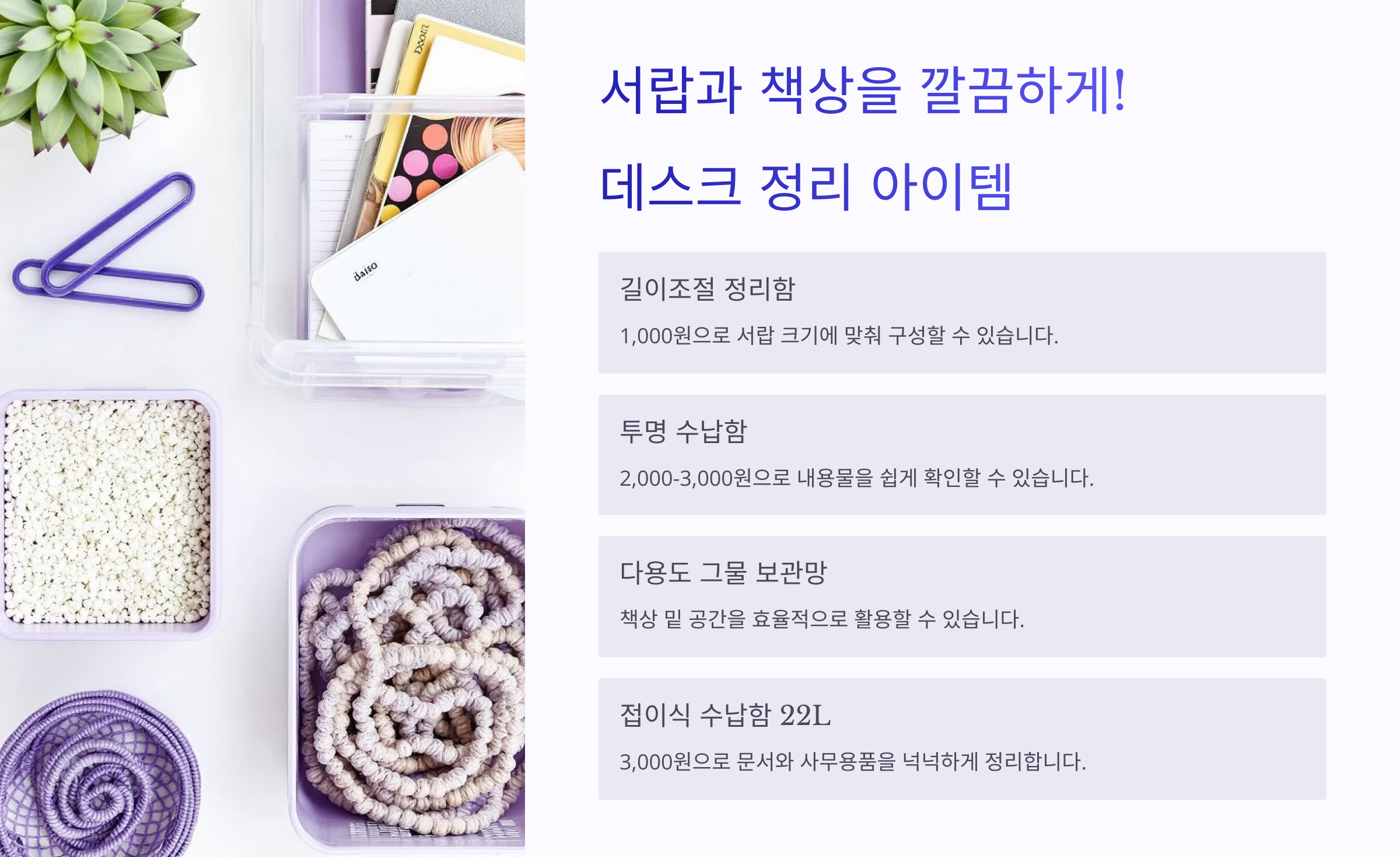 📂 다이소 데스크 정리 아이템 비교표