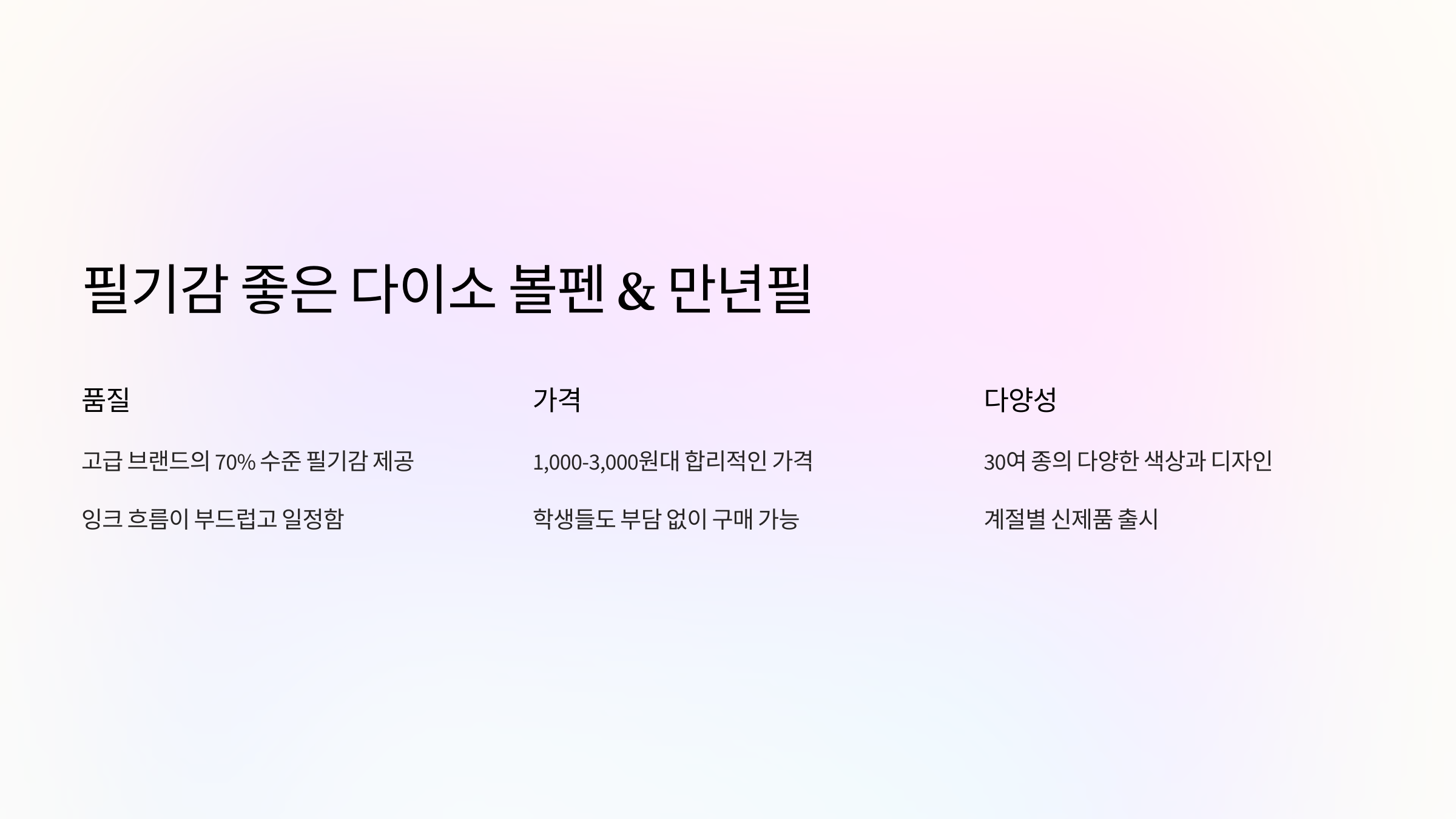 Q1. 다이소 볼펜 필기감은 어떤가요?