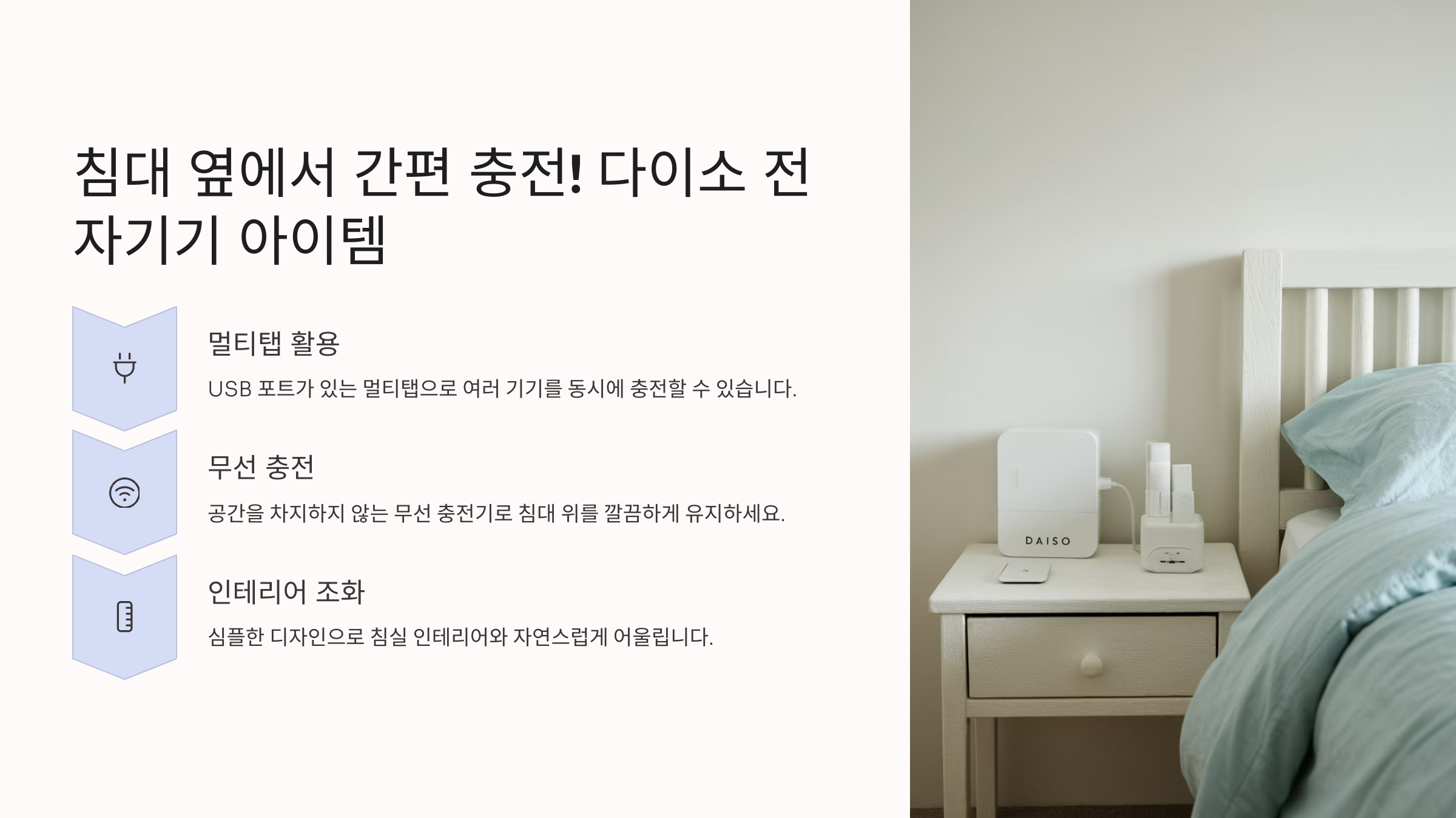 📱 침대 옆에서 간편 충전! 다이소 전자기기 아이템