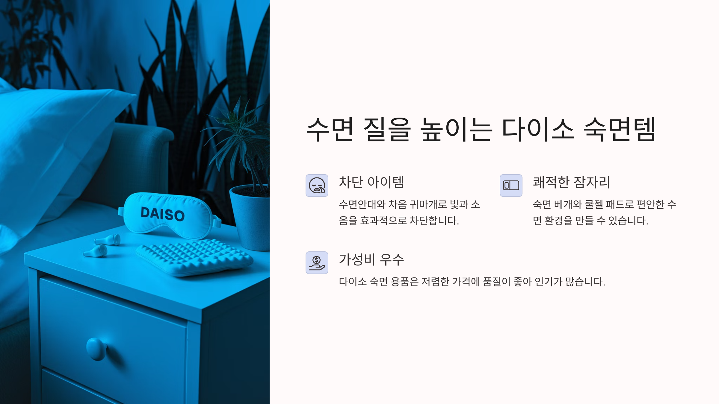🔽 계속해서 "수면 질을 높이는 다이소 숙면템"을 확인해 볼게요!