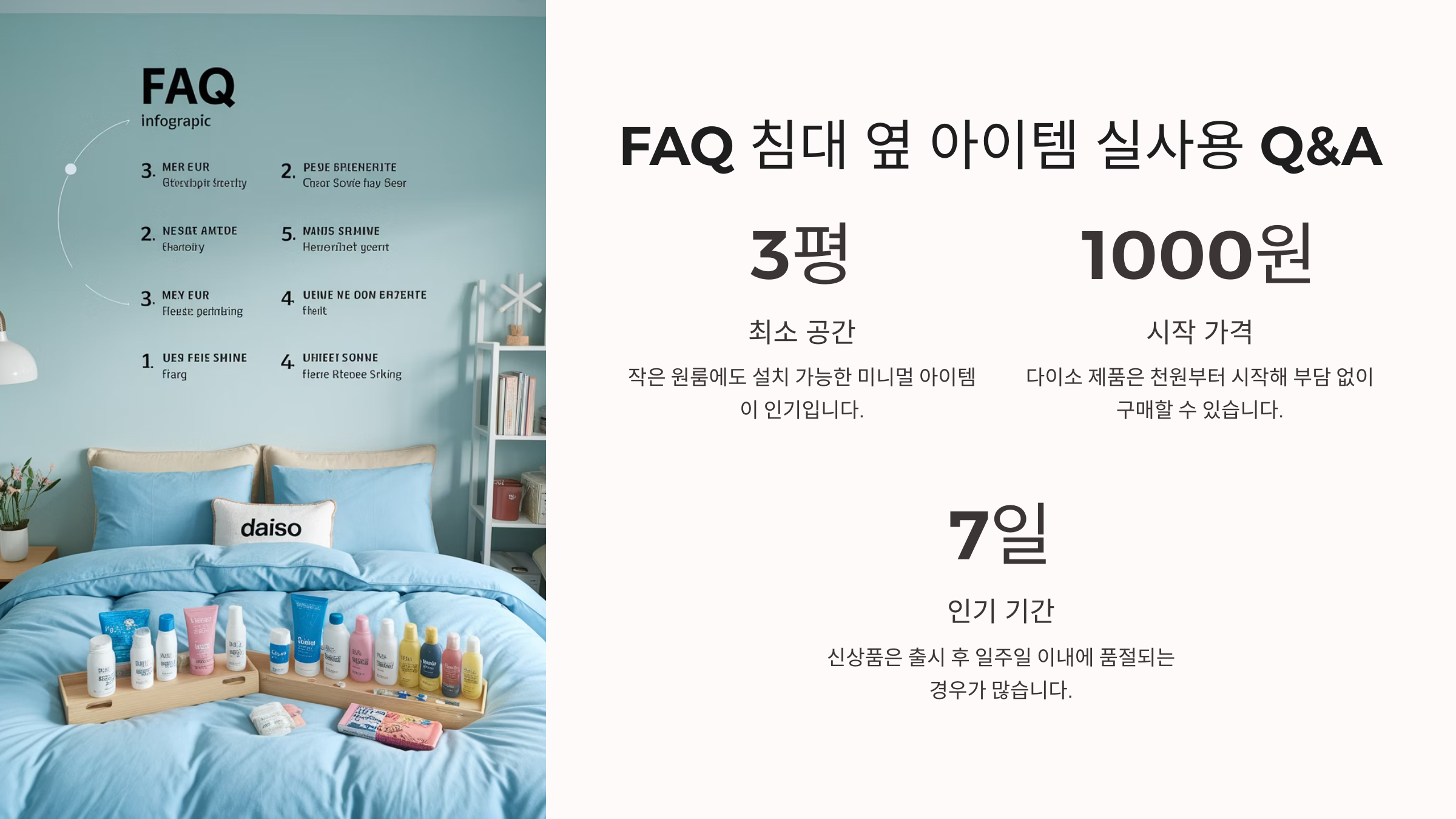 ✔ 이제 침실 위생까지 완벽하게 관리할 준비 끝! 그럼 마지막으로, 침대 옆 필수템에 대한 궁금증을 해결하는 FAQ를 준비했어요. ❓