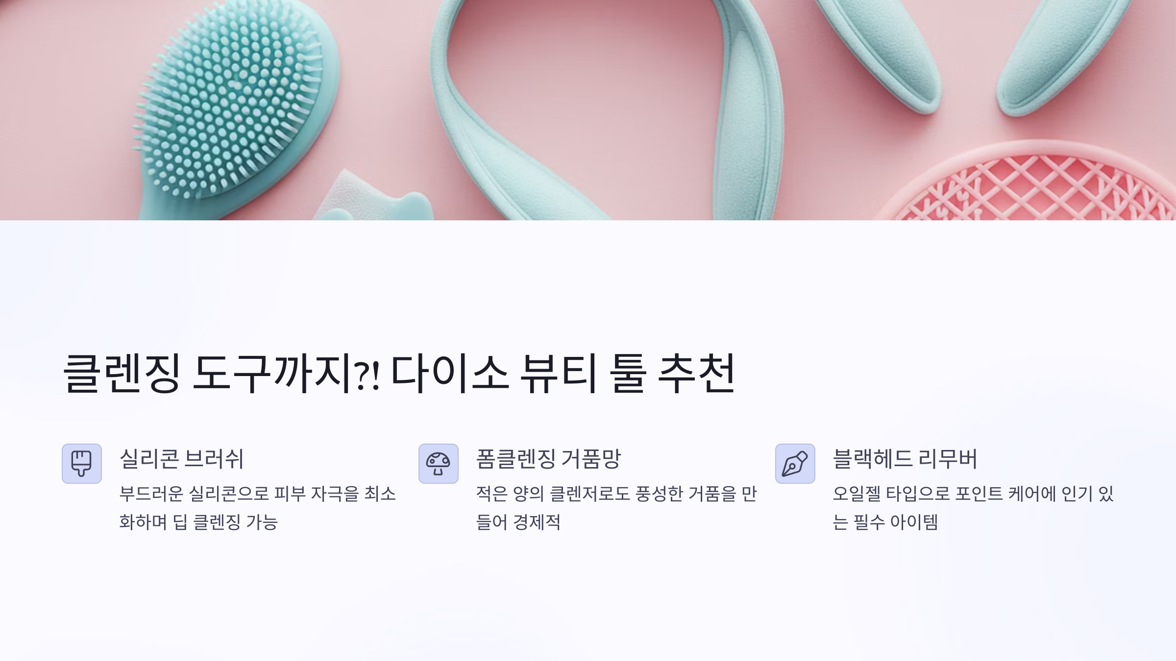 그럼 다이소에서 꼭 사야 할 클렌징 & 뷰티 도구 TOP 3를 소개할게요! 🎉